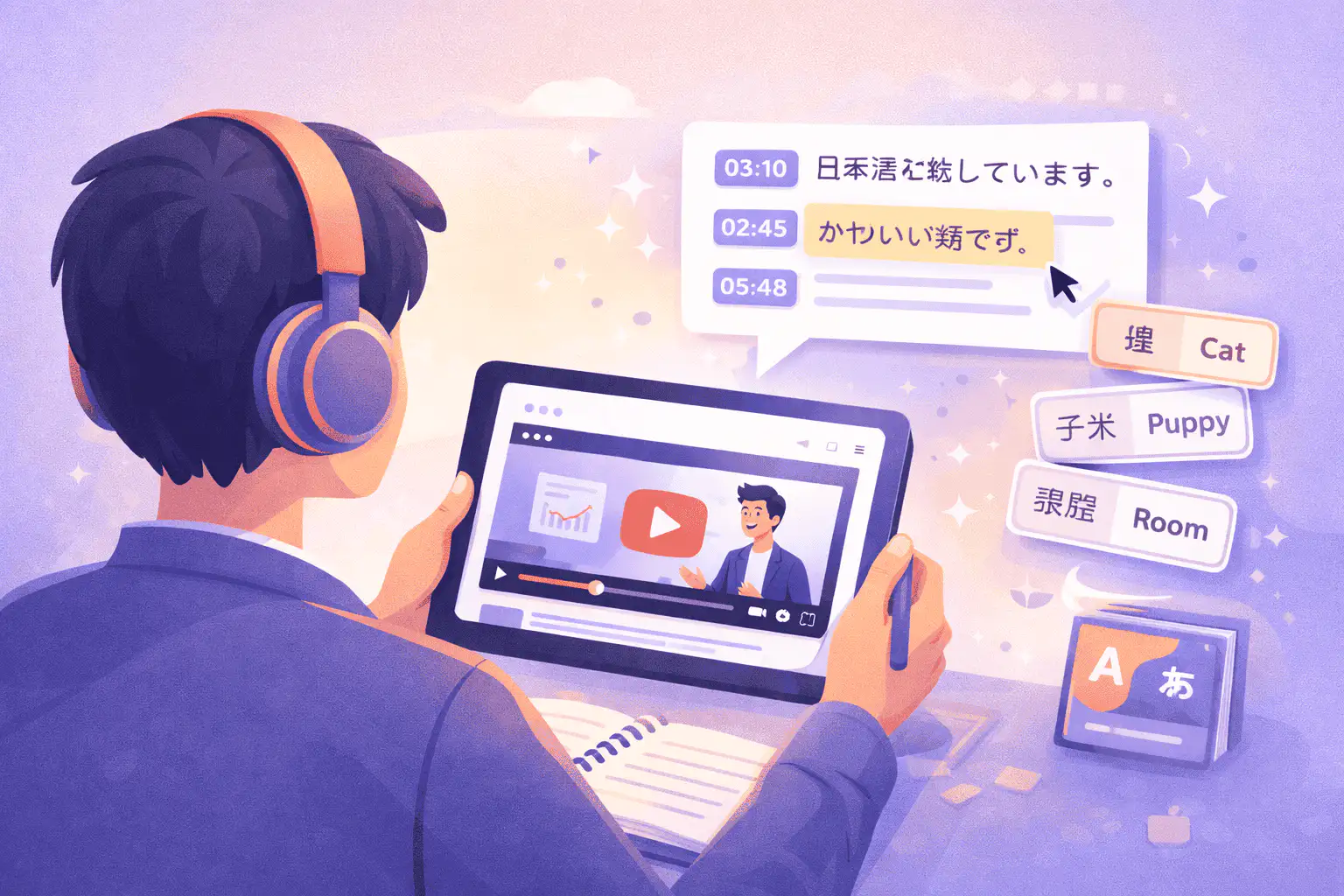 "I watch Japanese cooking channels to practice comprehension, but I miss words when they speak fast. Having the transcript open alongside the video lets me pause, read the sentence, look up the vocabulary I do not know, and then continue. It has helped more than any app or textbook I have tried."