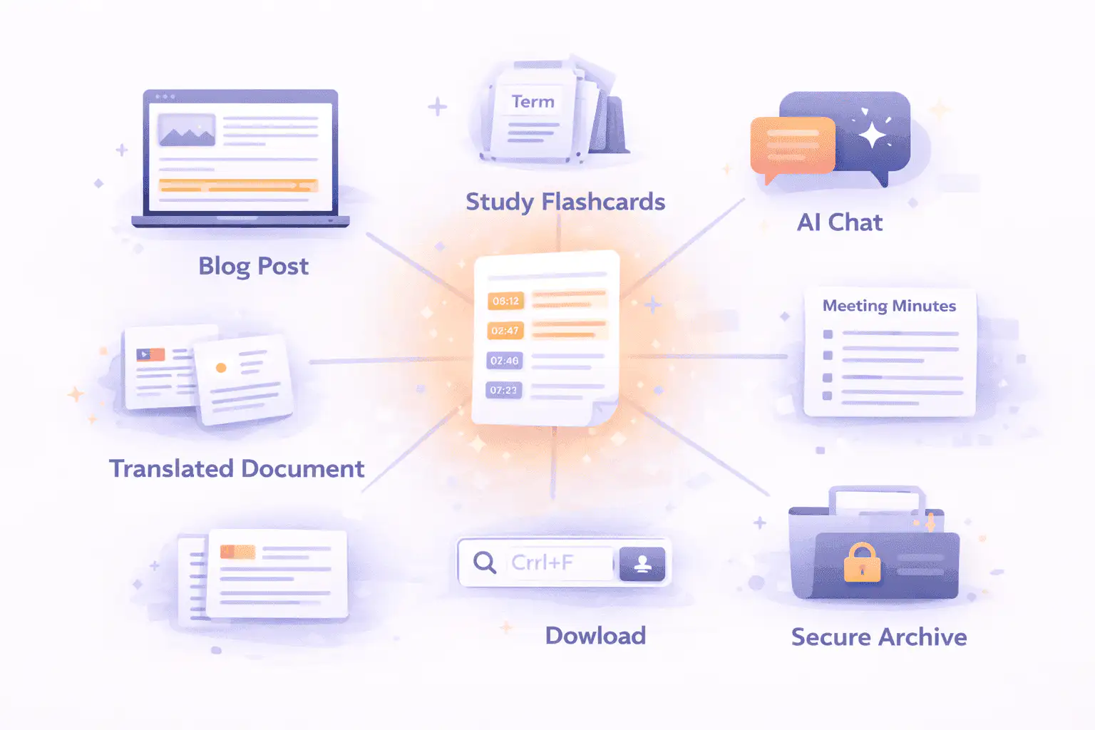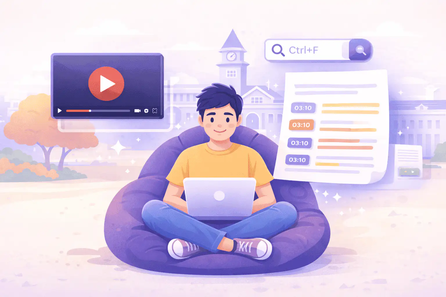 You already know the pain: a professor uploads a two-hour recorded lecture and expects you to absorb every word. Rewatching is not realistic. Pausing and typing notes by hand is slow and exhausting. Our YouTube to transcript tool gives you the entire lecture as searchable, timestamped text. Highlight the important parts. Ctrl+F for specific terms. Build study guides from the professor's own words — not your rushed paraphrase of them. Students at over 12,000 schools and universities already use our platform for exactly this.
